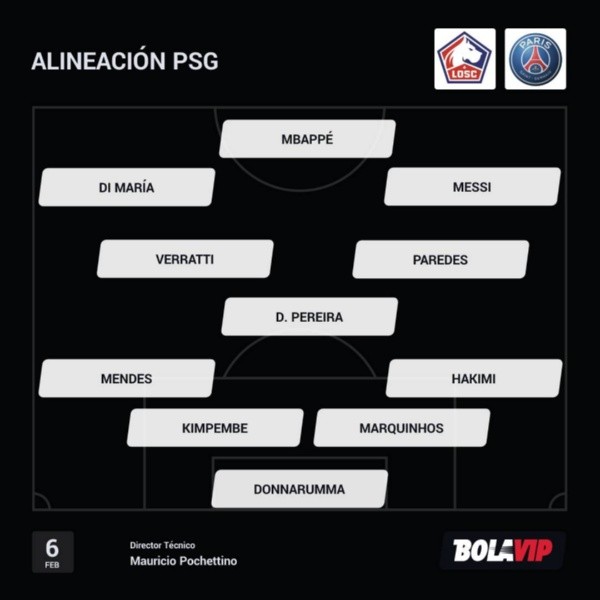 Pochettino sigue sin poder contar con Neymar, quien apunta a volver para la serie ante Real Madrid por Champions. A esta baja, hay que sumar a algunos jugadores que han retornado recientemente de sus selecciones y tendrán algo de descanso. Así, el once titular de PSG tendrá a Gianluigi Donnarumma; Achraf Hakimi, Marquinhos, PresnelKimpembe, Nuno Mendes; Leandro Paredes, Danilo Pereira, Marco Verratti; Lionel Messi, Kylian Mbappé y Ángel Di María.