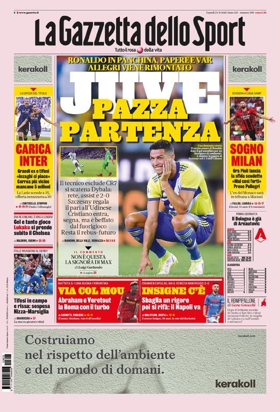 El luso fue suplente ante Udinese en un hecho que intentó ser explicado por Massimiliano Allegri y Pavel Nedved (vice del club) con palabras que poco o nada han convencido a los medios transalpinos. La Gazzetta dello Sport y Calciomercato aseguran que si bien hay una corriente que pretende retener a Cristiano, nadie lloraría su salida de Turín.