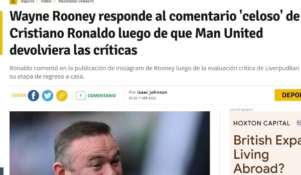 “Tendría que decir que no ha sido positivo su regreso a Manchester… Ciertamente no es el jugador que era cuando tenía 20 años. Y eso pasa, así es el fútbol. Es una amenaza de gol, pero creo que el resto del juego necesitan más, necesitan jugadores jóvenes y hambrientos”, fueron las palabras de Rooney que llevaron a CR7 a decirle directamente vía Instagram un claro y contundente “Celoso”.