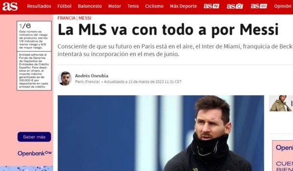 L’Equipe y AS son quienes informan como desde París siguen adelante con su deseo por renovar al argentino, así como que solo le ofrecerían un año de contrato que no encajaría con las pretensiones del entorno del rosarino. Teniendo en cuenta que Barcelona tendrá prácticamente imposible su contratación por motivos económicos y que no existen a día de hoy otros interesados por hacerse con sus servicios, la Major League Soccer traza su plan para que Messi, si todo llega a buen puerto, pueda comenzar su aventura por Norteamérica desde el mes de julio.