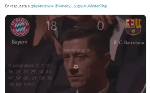 Como siempre que hay eventos de gran importancia, las redes sociales estuvieron en tema y replicaron los mejores momentos de la noche europea con creativos memes. Aunque Barcelona se juega la clasificación este miércoles ante Bayern Múnich, los usuarios predijeron la actuación de Robert Lewandowski ante los de Xavi Hernández.