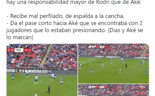 Sin embargo, a través de redes sociales, varios usuarios manifestaron que la culpa no era ni siquiera de Ake, sino de Rodrí, quien al verse complicado en el segundo cuarto de la cancha decidió retroceder la jugada y devolverla al defensa central, quien fue el que quedó como el pagano.