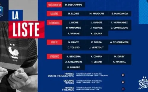 Delanteros: Karim Benzema (Real Madrid), Antoine Griezmann (FC Barcelona), Moussa Diaby (Leverkusen), Kingsley Coman (Bayern Munich), Thomas Lemar (Atlético de Madrid) Anthony Martial (Manchester United) y Kylian Mbappé (PSG).