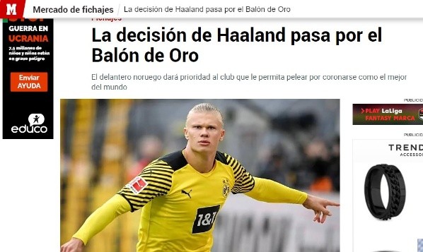 MARCA asegura que Haaland prioriza por encima de todo un proyecto deportivo donde no su nombre no entre en las rotaciones habituales de nuestros tiempos, donde todo el equipo gire a su alrededor y donde todos los esfuerzos vayan en pro de convertirle en la máxima figura del fútbol de elite en cada temporada.