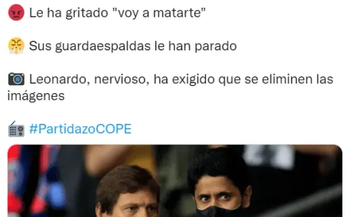 En medio de aquel caos, un empleado de Real Madrid habría grabado la secuencia y eso enfureció aún más a Al-Khelaïfi, que le habría dicho: “Voy a matarte“. Los guardaespaldas del qatarí lo separaron, mientras que Leonardo, el director deportivo del equipo, le exigió que borrara el video.