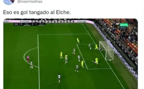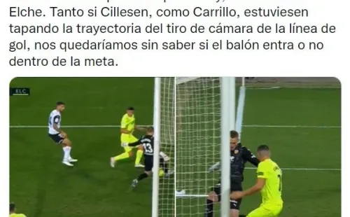 Valencia derrotó 2-1 a Elche en el marco de la jornada 17 de LaLiga. Al minuto 88, el delantero argentino Guido Carrillo, prácticamente frente al arco, impactó la pelota, que según las imágenes parece que cruzó la línea, pero la video asistencia indicó que no era gol válido.