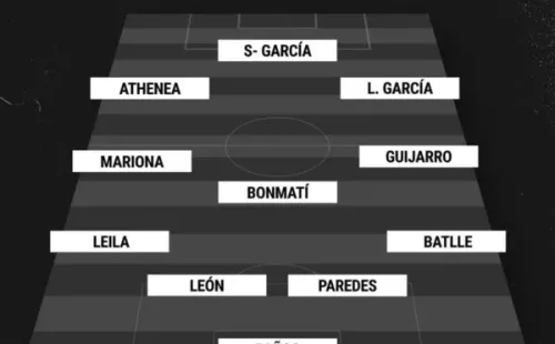Sandra Paños; Irene Paredes, María León, Ona Batlle, Leila; Patri Guijarro, Aitana, Mariona; Sheila García, Athenea y Lucía García