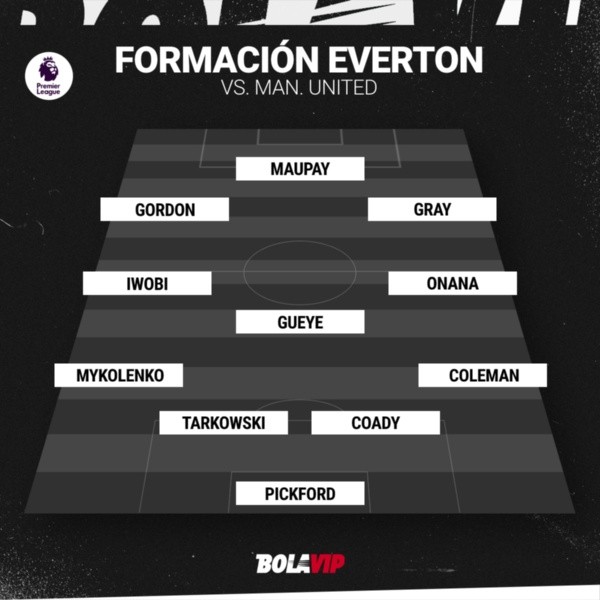 Pickford; Coleman, Coady, Tarkowski, Mykolenko; Onana, Gueye, Iwobi; Gray, Maupay, Gordon.