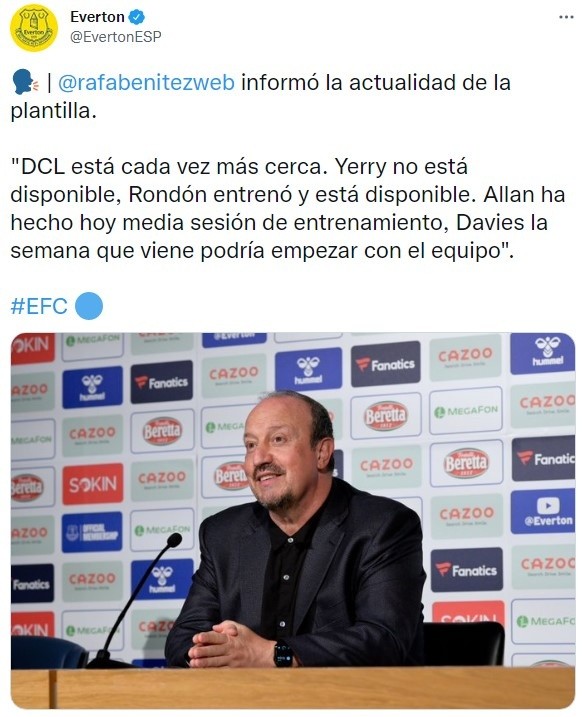 Vamos con la realidad de los “Toffees“, donde después de ocho partidos en los cuales habían cosechado dos igualdades con seis derrotas, llegó la calma con el gran triunfo por 2-1 que lograron ante Arsenal la semana pasada. Producto de la misma, el equipo que posee al español Rafael Benítez como entrenador está 12° con 18 puntos, a siete del ingreso a la segunda competición de Europa más importante a nivel clubes.