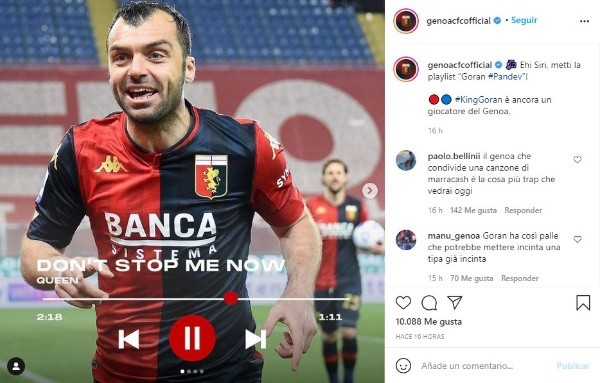 Genoa, de la Serie A italiana es el equipo actual y en el que el futbolista de Macedonia, Goran Pandev, ha estado en las últimas seis temporadas; es una de las fichas de experiencia y por eso decidió continuar en la disciplina del equipo en el que estará por un tiempo más.