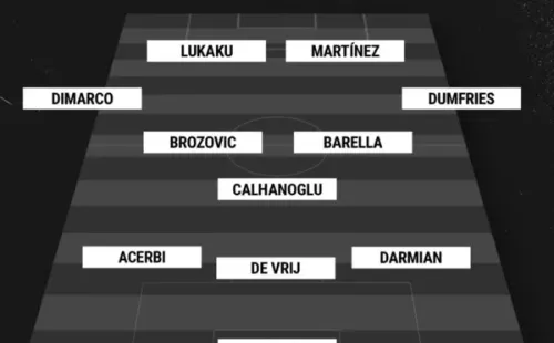 Onana; Darmian, De Vrij, Acerbi; Dumfries, Barella, Calhanoglu, Brozovic, Dimarco; Lukaku, Martínez.