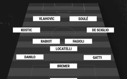 Szczesny; Gatti, Bremer, Danilo; De Sciglio, Fagioli, Locatelli, Rabiot, Kostic; Soulé, Vlahovic.