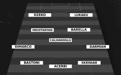 André Onana; Milan Skriniar, Francesco Acerbi, Alessandro Bastoni; Mattia Darmian, Nicolò Barella, Hakan Calhanoglu, HenrikhMkhitaryan, Federico Dimarco; Edin Dzeko, Romelu Lukaku.
