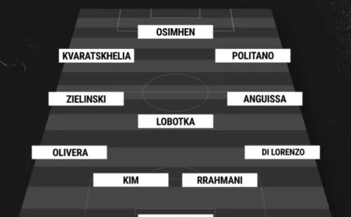 Meret; Di Lorenzo, Amir Rrahmani, Min-Jae Kim, Mathías Olivera; Zambo Anguissa, Stalinslav Lobotka, Piotr Zielinski; Matteo Politano, Victor Osimhen, KhvichaKvaratskhelia.