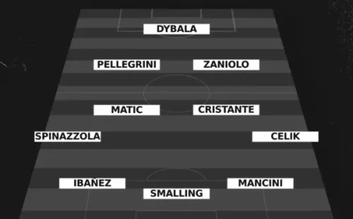 Rui Patricio; Mancini, Smalling, Ibáñez; Celik, Cristante, Matic, Spinazzola; Zaniolo, Pellegrini; y Dybala.