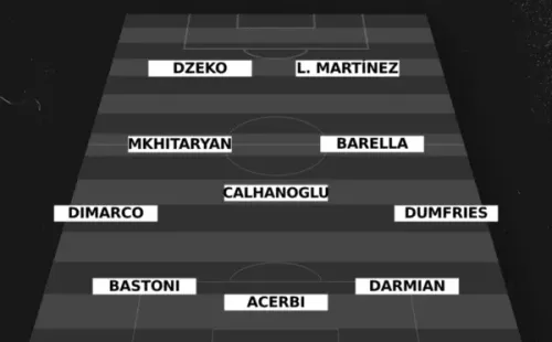 Inzaghi recupera a Calhanoglu para este duelo y es duda junto a Marcelo Brozovic para el duelo. Ante esto, el once titular de Inter tiene a André Onana; Matteo Darmian, Francesco Acerbi, Alessandro Bastoni; Denzel Dumfries, Nicolò Barella, Hakan Calhanoglu, Henrik Mkhitaryan, Federico Dimarco; Lautaro Martínez y Edin Dzeko.