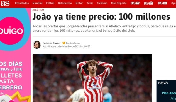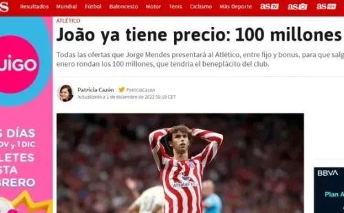Manchester United (quienes ya ofrecieran dinero por Joao Félix en verano), PSG y Bayern Múnich, los primeros interesados en un futbolista que dejará Atlético de Madrid más pronto que tarde. Diego Pablo Simeone no pondrá trabas a dicha operación y Qatar 2022 será el único que indique si el precio de salida del luso aumenta o no antes de enero.