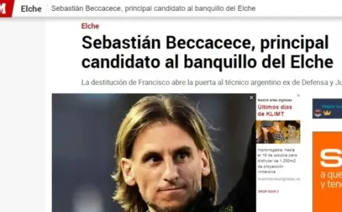 Pero no se terminan ahí las informaciones del medio deportivo más importante de la península, donde aseguran que luego de que Francisco perdiese su cargo al frente de un Elche que cabalga como colista de LaLiga, Sebastián Beccacece es el máximo candidato de Christian Bragarnik para tener su primera experiencia en el viejo continente.