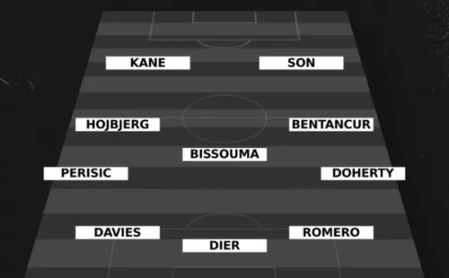 Antonio Conte viajará a Old Trafford con la baja de Richarlison, por lo que se especula con un cambio de sistema para poner hasta cinco jugadores en el mediocampo y dejar a Heung-min Son y Harry Kane como únicos atacantes. Así, el once titular de Tottenham va con Hugo Lloris; Cristian Romero, Eric Dier, Ben Davies; Matt Doherty, Rodrigo Bentancur, Yves Bissouma, Pierre-Émile Hojbjerg,Ivan Perisic; Heung-min Son yHarry Kane.