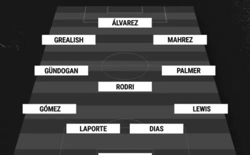 Con esta decisión del entrenador, la alineación titular de Manchester City va con Stefan Ortega; Rico Lewis, Rúben Dias, Aymeric Laporte, Sergio Gómez; Cole Palmer, Rodri, Ilkay Gündogan; Riyad Mahrez, Julián Álvarez y JackGrealish.