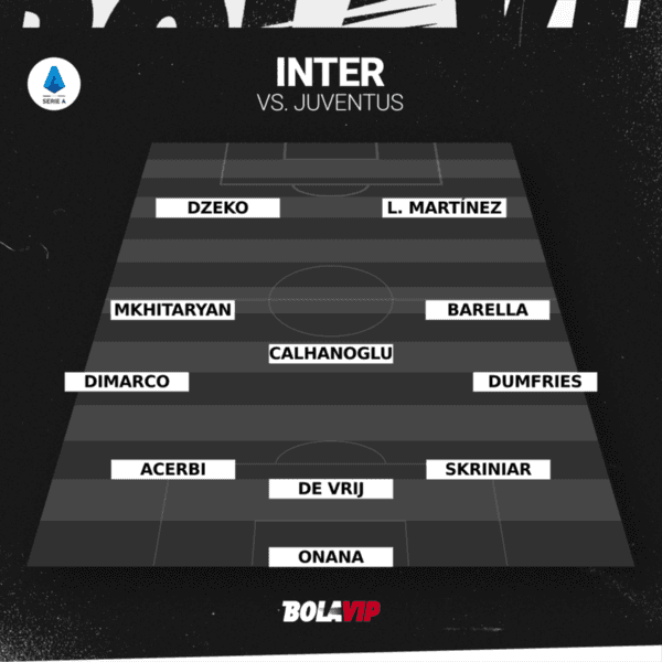 Con estas novedades, Inzaghi pone a André Onana; Milan Skriniar, Stefan De Vrij, Francesco Acerbi; Denzel Dumfries, Nicoló Barella, Hakan Calhanoglu, Henrik Mkhitaryan, Federico Dimarco; Lautaro Martínez y Edin Dzeko en el once titular de Inter en este derbi.