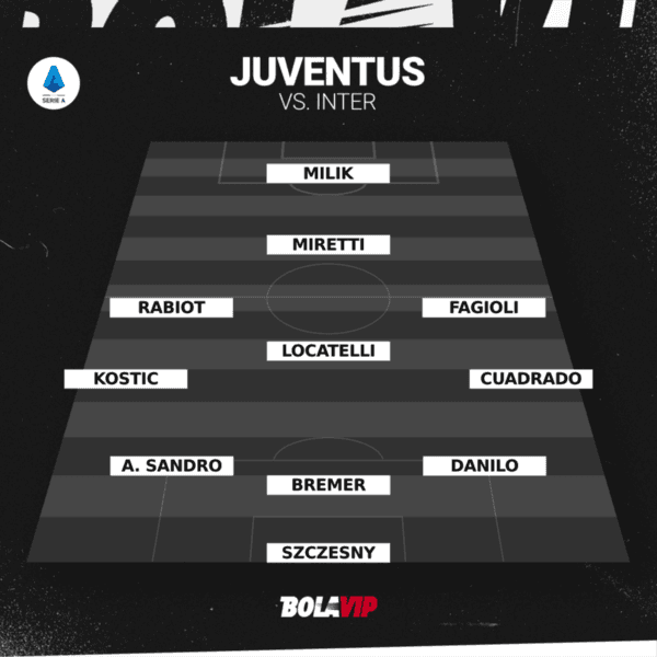 Con algunos regresos y la base del partido anterior ante PSG, Juventus dispone de Wojciech Szczesny; Danilo, Gleison Bremer, Alex Sandro; Juan Guillermo Cuadrado, Nicoló Fagioli, Manuel Locatelli, Adrien Rabiot, Filip Kostic; Fabio Miretti;y Arkadiusz Milik en su alineación titular para el derbi.
