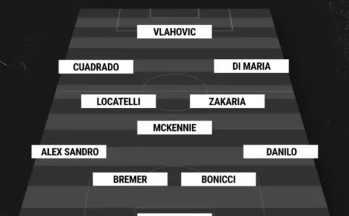 Mattia Perin; Danilo; Leonardo Bonucci, Bremer y Alex Sandro; Angel Di Maria, Denis Zakaria, Weston McKennie, Manuel Locatelli, Juan Cuadrado; Dusan Vlahovic.