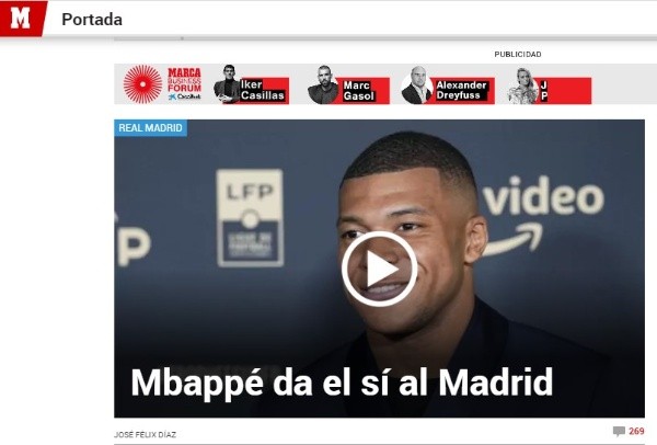 Lejos de perder el tiempo y con una seguridad absoluta, desde España el Diario MARCA resume que todo se encuentra hecho entre Florentino Pérez y el delantero del PSG. “Mbappé da el sí al Madrid”, es el titular que abre la portada del medio en este momento y que ya es replicada por portales deportivos de toda España y Francia. Afirman desde la capital que no habrá anuncios oficiales hasta que termine la Ligue 1.