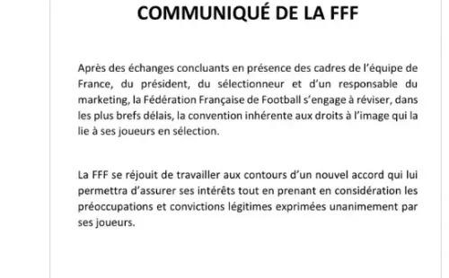 Y concluyeron, para dejar atrásla polémica: “La FFF está encantada de trabajar en las líneas generales de un nuevo acuerdo que le permitirá garantizar sus intereses teniendo en cuenta las preocupaciones y convicciones legítimas expresadas unánimemente por sus jugadores“.