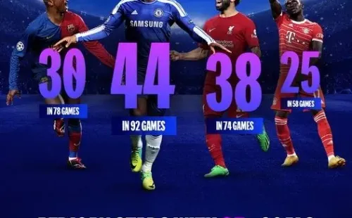 Sadio Mané ahora se ubicó en el Top 5 de los jugadores del continente africano con más goles en Champions League. listado que encabeza encabeza Didier Drogba con 44 goles, seguido de Mohamed Salah con 42 y Samuel Eto’o, quien registra 33, ahora Sadio Mané tiene 25 goles.