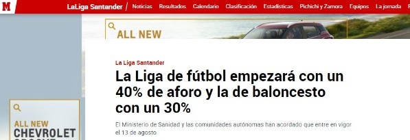 Carolina Darias fue la encargada de dar la noticia: “Los estadios deportivos serán abiertos en un 40% para el inicio de LaLiga. Ese será el máximo permitido, mientras que en los recintos cerrados será del 30%. Será obligatorio utilizar mascarilla, debe haber distanciamiento social y no se permitirá la venta de bebidas o comida dentro del reciento”.