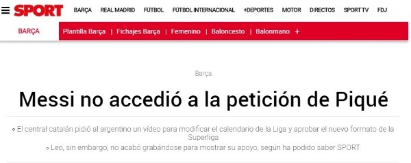 Desde Sport confirman que dicho video pedido por Piqué a Messi nunca llegó a grabarse y que el argentino no quiso meterse en cuestiones burocráticas. Si bien tanto el defensor del Barcelona como el presidente de la RFEF acabaron consiguiendo su objetivo, no pudieron hacerlo con ese video donde se pretendía que Lionel apoyase publicamente el cambio de calendario necesario para que la Supercopa de España pasase a jugarse en enero. Sigue la trama.