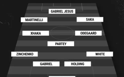 Ramsdale; Ben White, Holding, Gabriel, Zinchenko; Odegaard, Partey, Xhaka; Saka, Jesus, Martinelli.