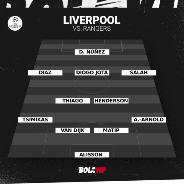 Alisson; Alexander-Arnold, Matip, Van Dijk, Tsimikas; Henderson, Thiago; Salah, Diogo Jota, Luis Díaz; y Darwin Núñez.