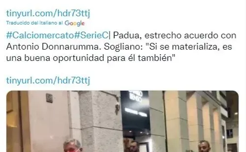 El periodista especializado en fichajes, Gianluca Di Marzio fue el encargado de divulgar la información sobre el eventual arribo de Antonio Donnarumma al Padua. A través de redes sociales se supo que Sean Sogliano, director deportivo del equipo manifestó que: “si se materializa, es una buena oportunidad para él también”.