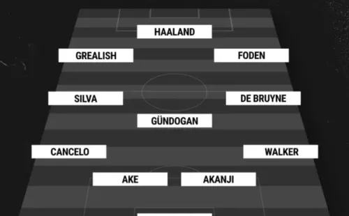 Ederson; Walker, Akanji, Ake, Joao Cancelo; De Bruyne, Gündogan, Bernardo Silva; Foden, Haaland, Grealish