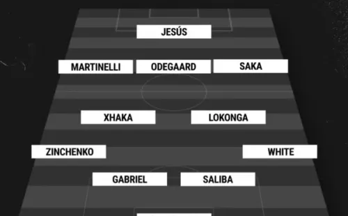 Ramsdale;White, Saliba, Gabriel, Zinchenko; Lokonga, Xhaka;Saka, Odegaard, Martinelli; Gabriel Jesus.
