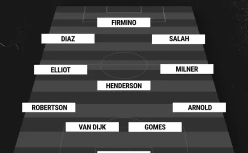 Alisson Becker; Trent Alexander-Arnold, Joe Gomez, Virgil Van Dijk, Andrew Robertson; James Millner, Jordan Henderson, Harvey Elliott;Mohamed Salah, Roberto Firmino, Luis Díaz.