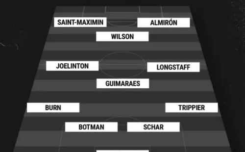 Karius; Trippier, Schar, Botman, Burn; Longstaff, Guimaraes, Jeolinton,; Almirón, Wilson, Saint-Maximin.