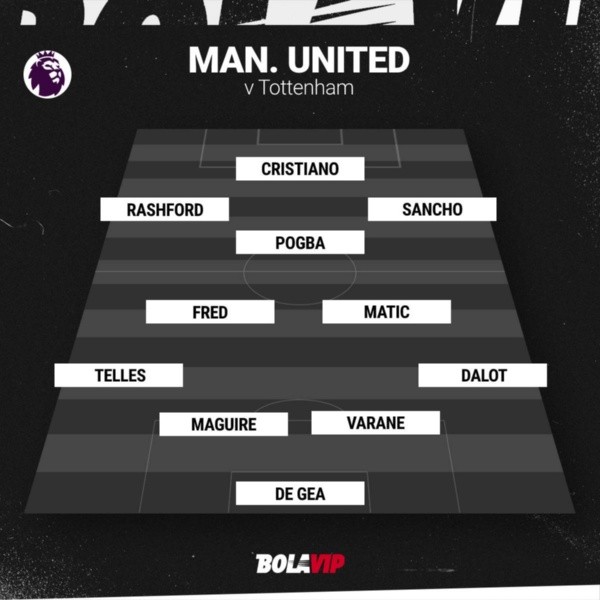 Davidde Gea; Diogo Dalot, Raphael Varane, HarryMaguire, AlexTelles; Nemanja Matić,Fred; JadonSancho, PaulPogba, Marcus Rashford; CristianoRonaldo.