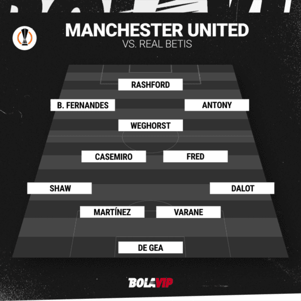 David de Gea;Diogo Dalot,Raphaël Varane,Lisandro Martínez,Luke Shaw;Frederico Rodrigues Santos,Casemiro; Antony, Wout Weghorst, Bruno Fernandes; yMarcus Rashford.