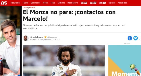 A sus 34 años tendrá que buscar nuevos retos y si bien desde AS apuntan que la MLS y Brasil buscan con fuerza sus servicios, el lateral sigue soñando con seguir en las grandes ligas del viejo continente. Un equipo llamativo, decidido a romper con todo en el Calcio y con un expresidente transalpino en sus espaldas, la última opción de Marcelo para continuar en Europa.