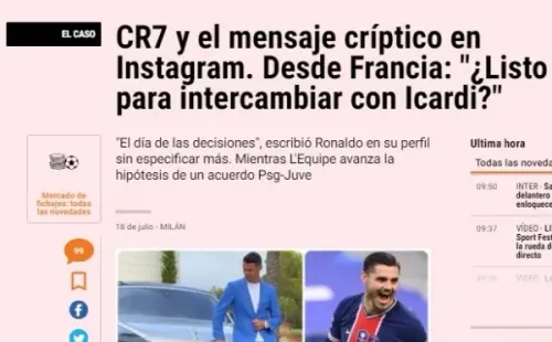 El medio de la capital francesa continúa asegurando que CR7 tiene muy buen cartel en París y que Allegri está loco por contar con el argentino Mauro Icardi, quien gracias a los refuerzos del PSG tiene más comprometida que nunca su titularidad. Si bien este cambio de fichas ya ha sido nombrado en el pasado, el mensaje de Cristiano en redes sociales vuelve a potenciar los rumores.