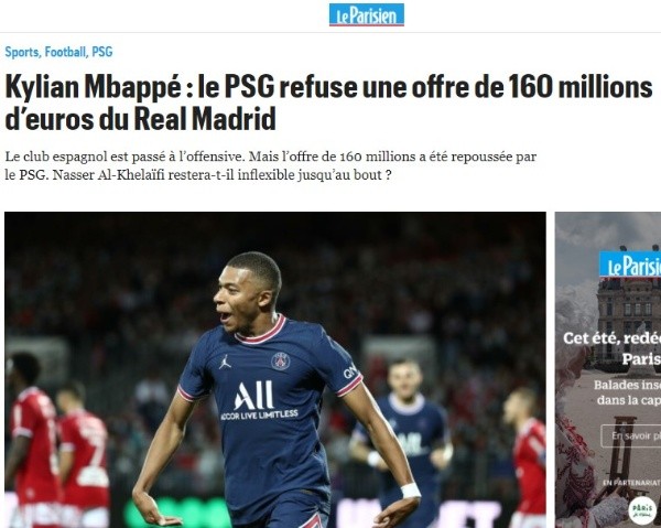 “Confirmado. El Real Madrid ha hecho una oferta formal por € 160m para fichar a Kylian Mbappé de inmediato. Todavía no hay luz verde del Paris Saint-Germain”, publicaba igualmente Fabrizio Romano en sus redes sociales sobre la de momento infranqueable posición del equipo capitalino.