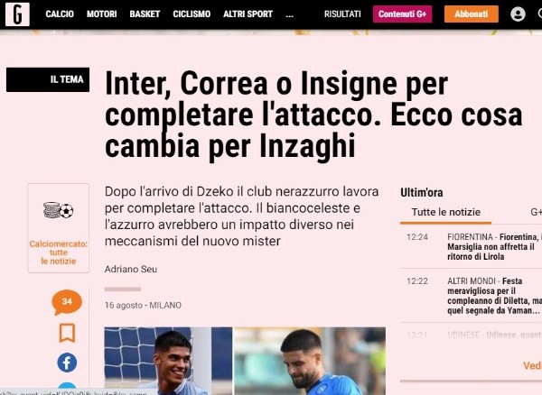 “Correa ciertamente tiene la edad de él, tres años menos que el azul. Pero Tucu es sobre todo un antiguo protegido del actual entrenador nerazzurri, que lo crio en la Lazio en sus últimos tres años en Roma. Inzaghi lo conoce a la perfección, sabe lo que podría aportar a la causa nerazzurri y podría replicar mecanismos y dinámicas ya probados en Biancoceleste, donde había moldeado una variada pareja de goles en sociedad con Immobile”, apunta el periodista Adriano Seu.