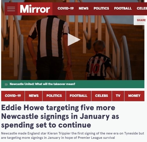 The Mirror y Sky aseguran que Howe ha pedido expresamente la llegada de dos marcadores centrales, dos delanteros y un lateral por izquierda en este mercado de pases. El entrenador de Newcastle exigirá por encima de todo el arribo de goles luego de que Callum Wilson haya caído lesionado por dos meses.