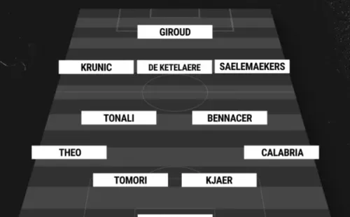 Maignan; Calabria, Kjaer, Tomori, Theo Hernández; Bennacer, Tonali; Saelemaekers, De Ketelaere, Krunic; Giroud.