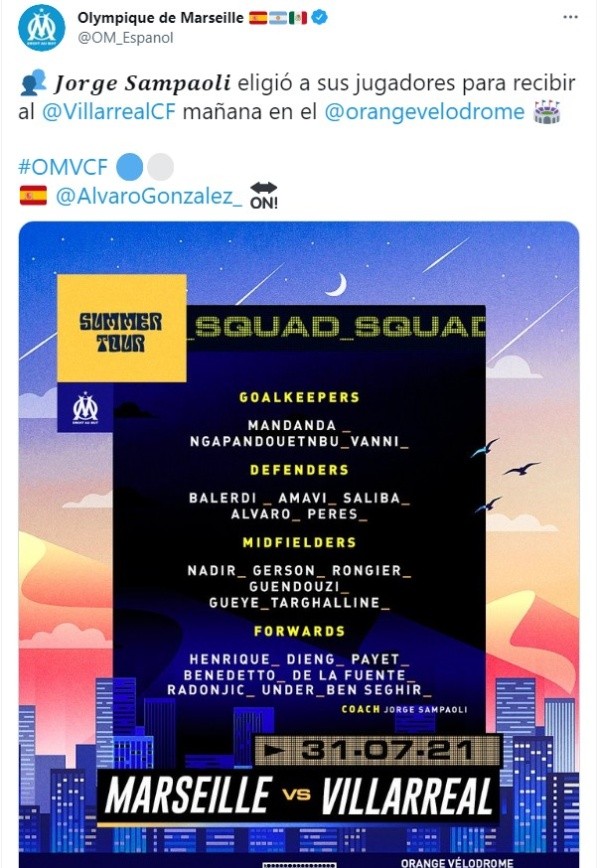 El encuentro entre Olympique Marsella y Villarrealpor un amistoso de pretemporada tendrá fecha para este sábado 31 de julio, con sede en el StadeVélodrome.