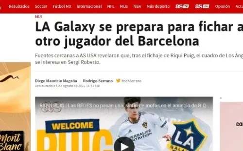 “La relación entre el LA Galaxy y el Barcelona ha marchado por buen camino desde los acercamientos del equipo estadounidense con el entorno blaugrana para el fichaje de Sergi Roberto, mismo que no logró concretarse, pero esto generó que comenzaran a darse un mayor número de acercamientos, mismos que rindieron frutos con el fichaje de Riqui Puig”, fue la noticia otorgada por el medio.