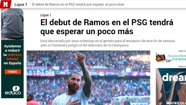 “Sergio Ramos: en su proceso de reacondicionamiento físico, apareció una molestia en el gemelo la semana pasada y requirió una adaptación de su carga de trabajo. A partir de la semana que viene reanudará su preparación individual en el campo”, confirman desde PSG en cuanto al nuevo inconveniente físico del español.